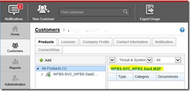 Select that specific Customer and “WFBS-SVC_WFBS_SaaS_MSP”
