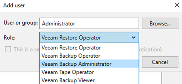 automatically assigned to Veeam Backup Administrators group. From here if you